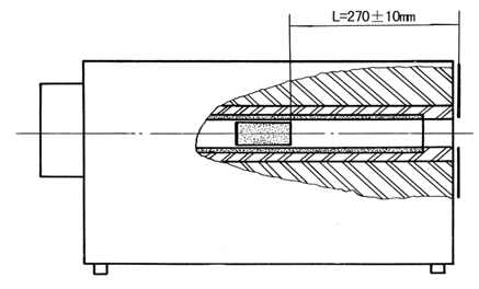 爐體中心為加熱管,加熱管內(nèi)置一“靶”,組成圓錐—圓柱復(fù)合腔體。“靶”在加熱管中的位置會(huì)影響黑體腔的黑度系數(shù),其位置由“靶”的端面至黑面板的距離L來保證。L=270±10mm。