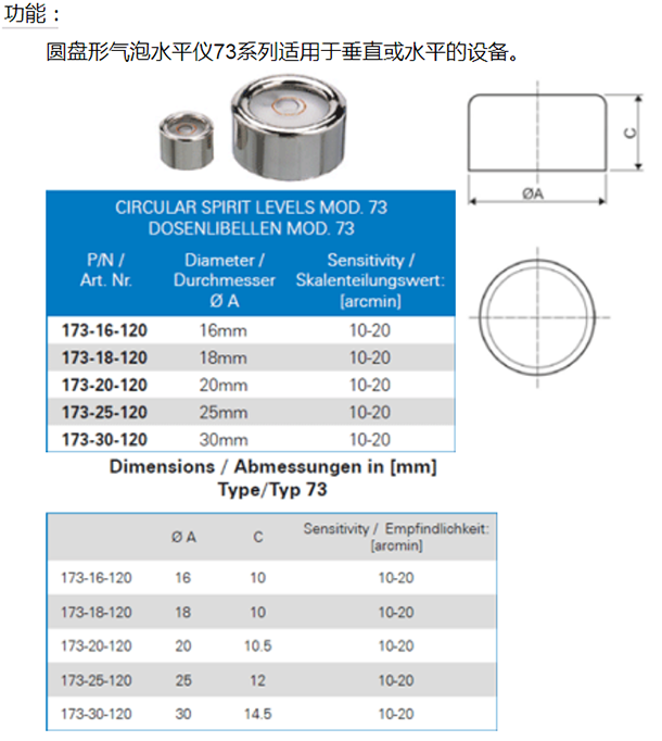 73系列圓盤形氣泡水平儀,適用于垂直或水平的設(shè)備。