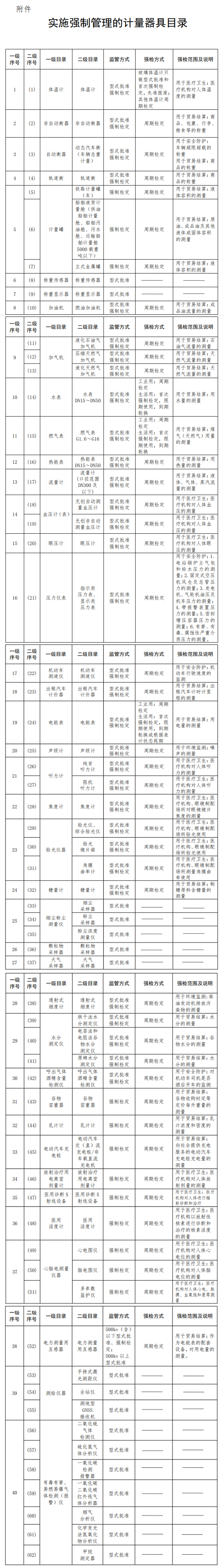 《實施強制管理的計量器具目錄》(以下簡稱《目錄》)