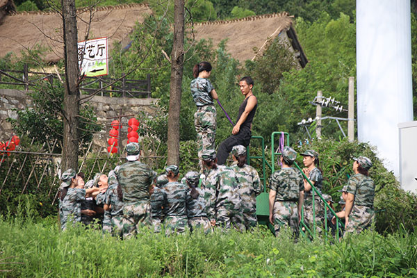 有隊員爬上斷橋后遲遲不敢動,但是在其他隊員的“充電”和鼓勵中,所有隊員挑戰成功。其中一個女隊員在上面哭了很久不敢動,最后在一個教官上去協助她后,才挑戰成功,下來之后,她跟教官說,這次回去之后,要和自己的媽媽和解。也許,人只有在最害怕、最無助的時候,才會想起誰最愛自己,自己最依賴誰。
