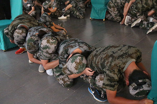 “眾志成城”。所有隊員在最短的時間內完成任務,同時坐下,同時起立。